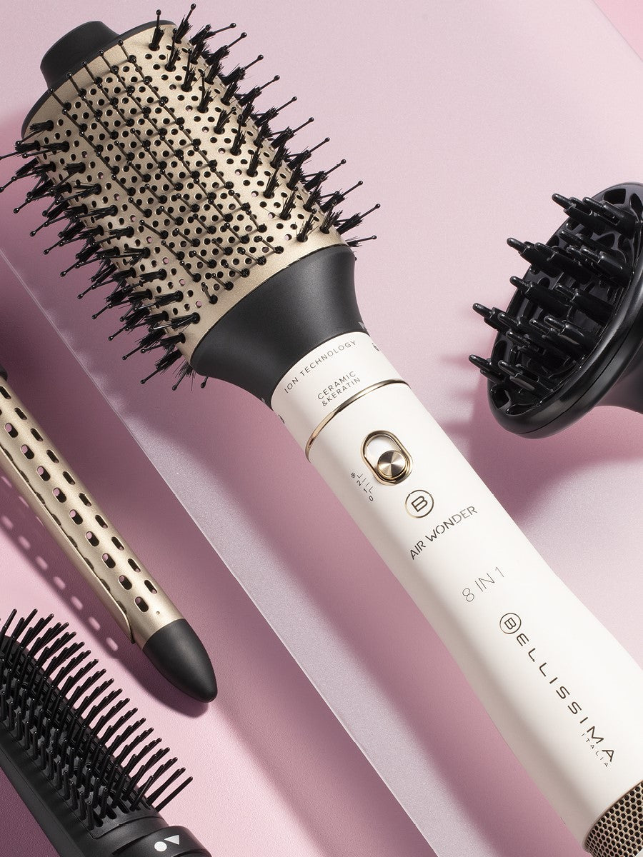 Explore limitless styling options with our range of interchangeable hot air stylers and hot brushes. Featuring a rotating ceramic coating our round brush hair dryers offer effortless drying and styling. Tailor your look with ease with our selection of interchangeable accessories, perfectly suited to your hair's length and texture. Whether you desire sleek, straight locks or voluminous waves, the possibilities are endless with the Bellissima Italia air styler.