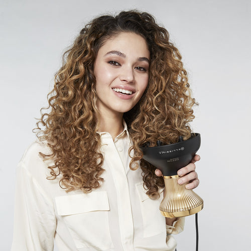 The Diffon Supreme is an innovative hot air diffuser. This model creates soft and defined, voluminous curls by combining a diffuser and a hairdryer in a single tool.